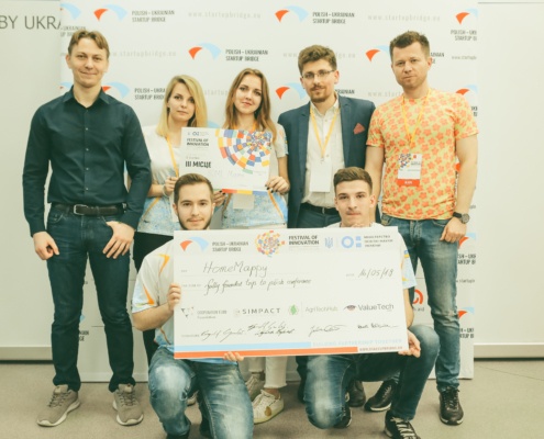 Meetup #3 was implemented on may 16, 2019 in Kyiv in cooperation with the Ministry of education and science of Ukraine as part of the all-Ukrainian innovation festival. Polish-Ukrainian Startup Bridge had its own competition stage, which was attended by about 150 people! We accepted more than 30 applications for participation in the competition, of which 12 of the best projects were allowed to perform on the final stage of the competition. The competition was won by the New Vision project, which received a prize of 1000 euros from Polish-Ukrainian Startup Bridge. In addition, the PUSB team highlighted the HomeMappy project, which received coverage for participation in the Wolves Summit 2019 in Poland. The event was attended by representatives of VC funds from the Bridge Alfa program: Simpact VC, AgriTechHub, ValueTech. The report from the event was broadcast in the most popular Ukrainian news channel ICTV. An archived recording of the report can be found at this link.